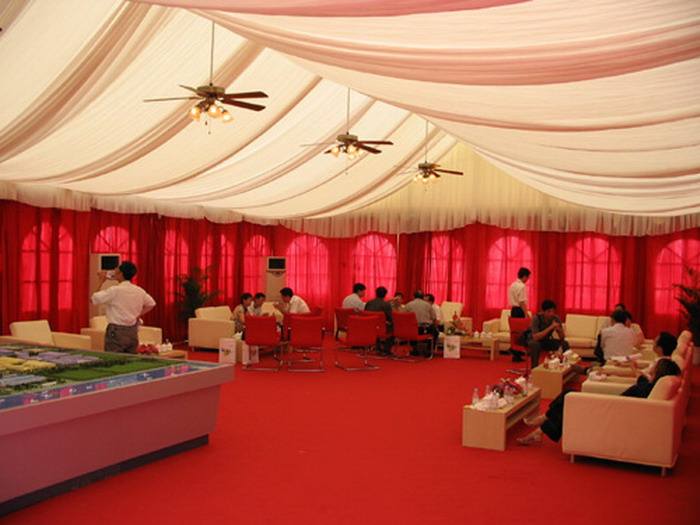 在選擇篷房表面的時候,首先篷房框架的頂部和周遭的部門所運用的布料是始末雙表面圖層辦理的,而且布料通常都是由滌綸長絲所制成的PVC。