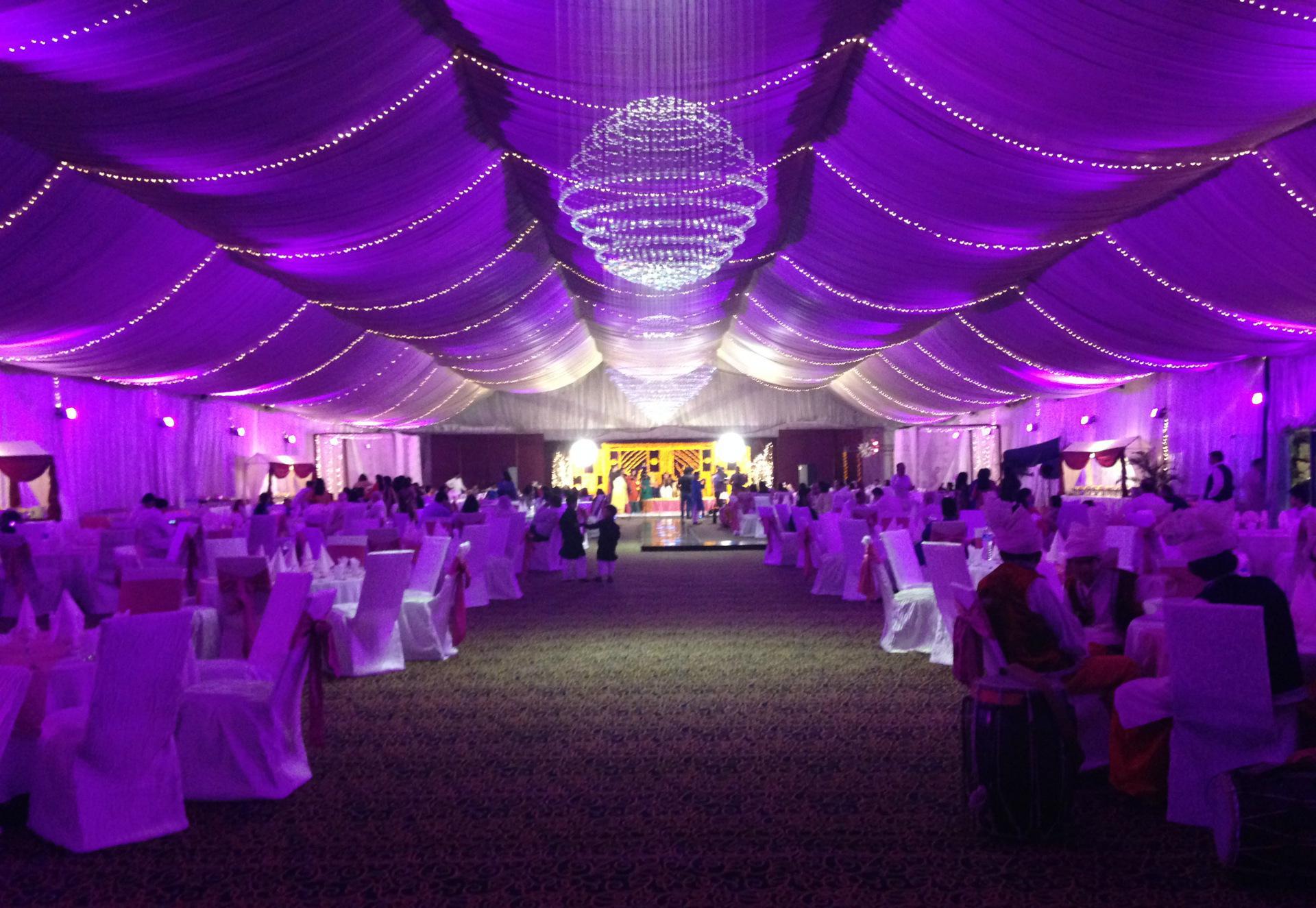 高山婚慶篷房生產廠家有多種可供選購的配件裝飾,一個婚禮篷房,以創(chuàng)造一個賞心悅目的婚禮環(huán)境為目的,結合不同的自然元素和人為因素,包括天花內飾,鮮花,桌椅等,還有彩色的燈光和優(yōu)美的自然環(huán)境,與透明篷房形成美妙的搭配,令您的婚禮更加夢幻,更加刻骨銘心。高山婚慶篷房生產廠家,能夠滿足你所有的需求,為你打造一個透明婚慶篷房。