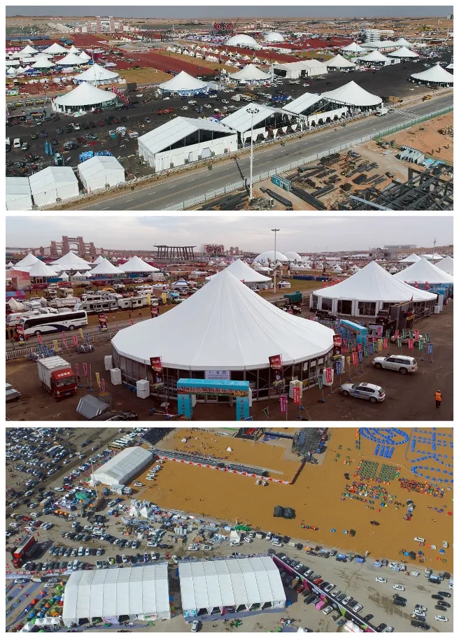 高山篷房在沙漠上一個月時間建筑一座城,各種人字,多邊形,球形,四角亭等篷房共計2萬多平方,燈光,地板,玻璃門,墻體等配套是最全與要求最高一次,從生產(chǎn),配套,安裝等方面出色完成了任務(wù),得到阿拉善盟與組委會贊賞,從2015年開始連續(xù)合作6年,看重高山公司整體實力與彼此相信力量,英雄大會有幸,因高山篷房而增色不少。