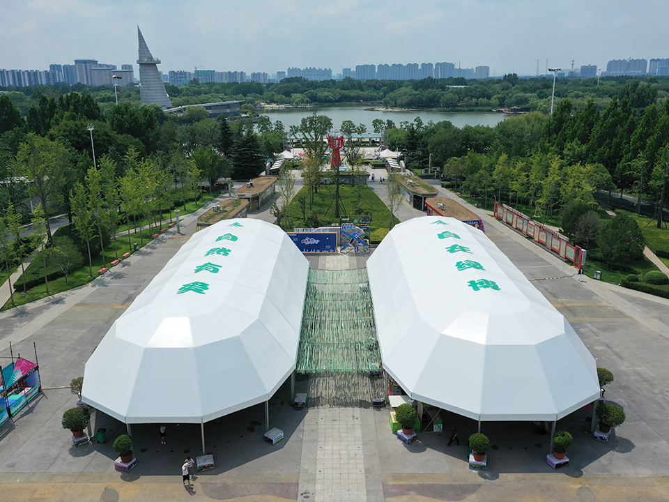 2025年夏季,高山篷房作為鄭州綠博園“歡樂喜聚秀”活動的戰略合作伙伴,以創新設計的鉆石型篷房(外白內黑)為核心載體,為景區打造兼具美學與功能性的藝術空間,助力為期45天的夏日狂歡活動圓滿落地。