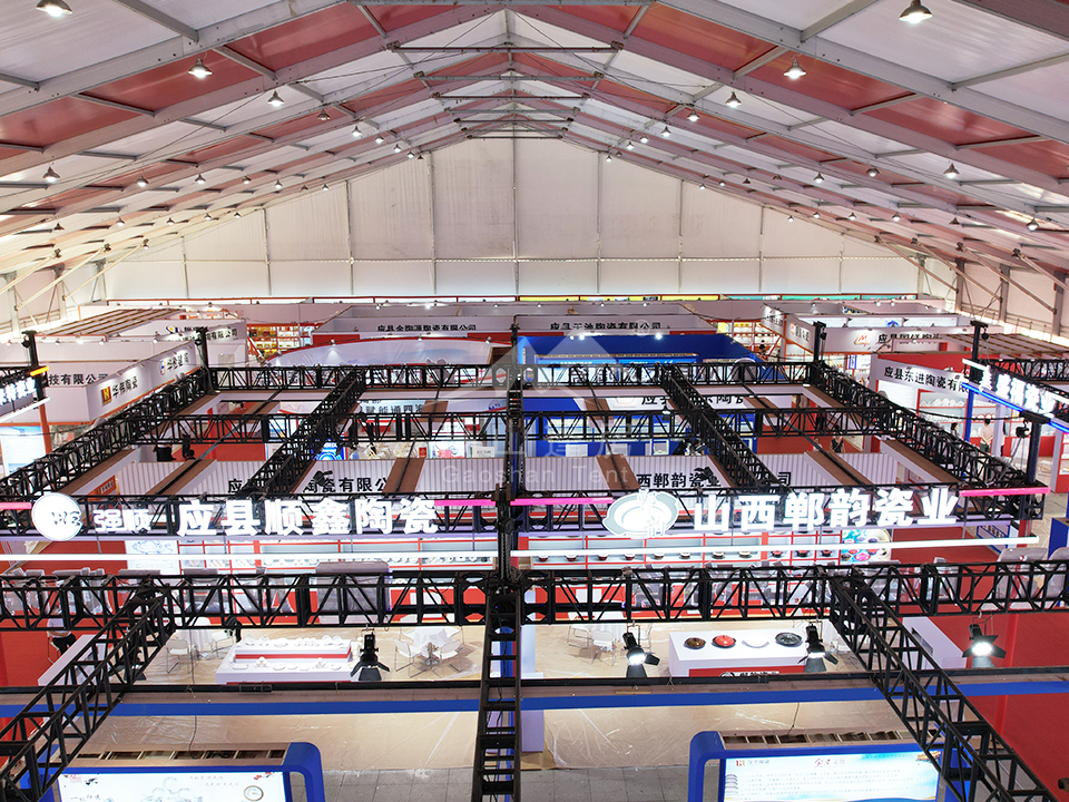 篷房內(nèi)部空間開闊,占地達數(shù)千平方米,為來自朔州本地及國內(nèi)外的陶瓷企業(yè)提供了完美的展示平臺。參展商紛紛展示各自的精品力作,包括日用瓷、建筑瓷、工藝瓷等多元化產(chǎn)品。