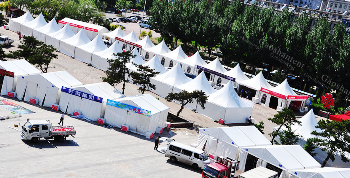 臨時售票廳/接待處:臨時室外活動使用時間短,高山尖頂篷房可靈活拆搭,功能性強,廣泛應用于車站、會議、演唱會、體育賽事等大中小型活動。