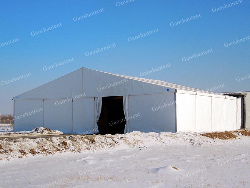 3,防風(fēng)防雪:對于工礦類企業(yè)來說,篷房使用期限較長,基本都要跨越四季,像山西、內(nèi)蒙等地區(qū)的冬季,常會出現(xiàn)大風(fēng)、寒潮、暴雪等極端天氣。而篷房可對風(fēng)雪寒潮進(jìn)行特別加固,采用的加強(qiáng)鋁材和篷布,可抗風(fēng)10級,抗50cm厚的雪載,B1級防火,能夠很好地抵御極端天氣的考驗(yàn)。